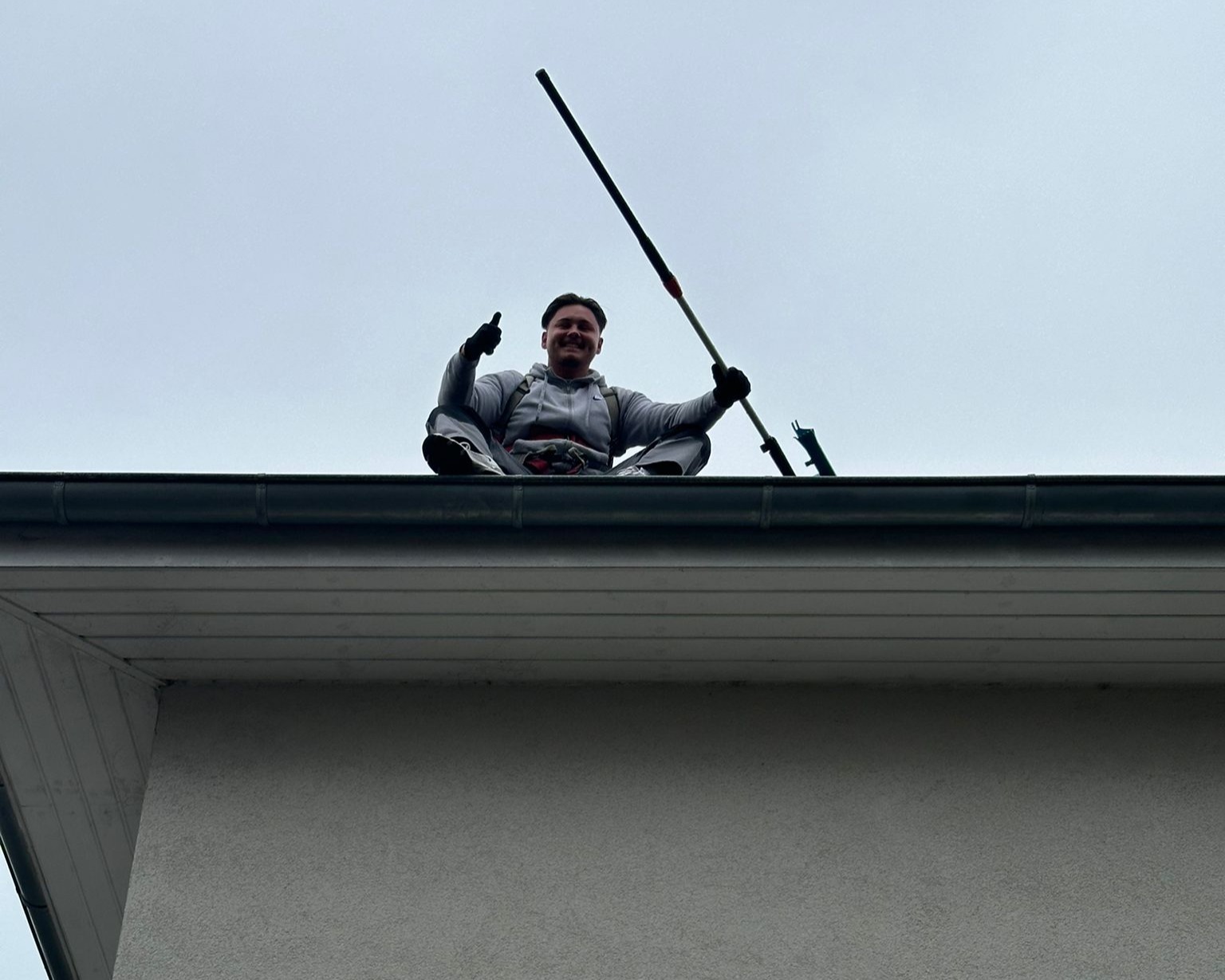 Dachrinnenreinigung: Mit speziellen Werkzeug befreien wir Dachrinnen und Fallrohre gründlich von Laub, Schlamm und Ablagerungen, um Verstopfungen zu vermeiden.