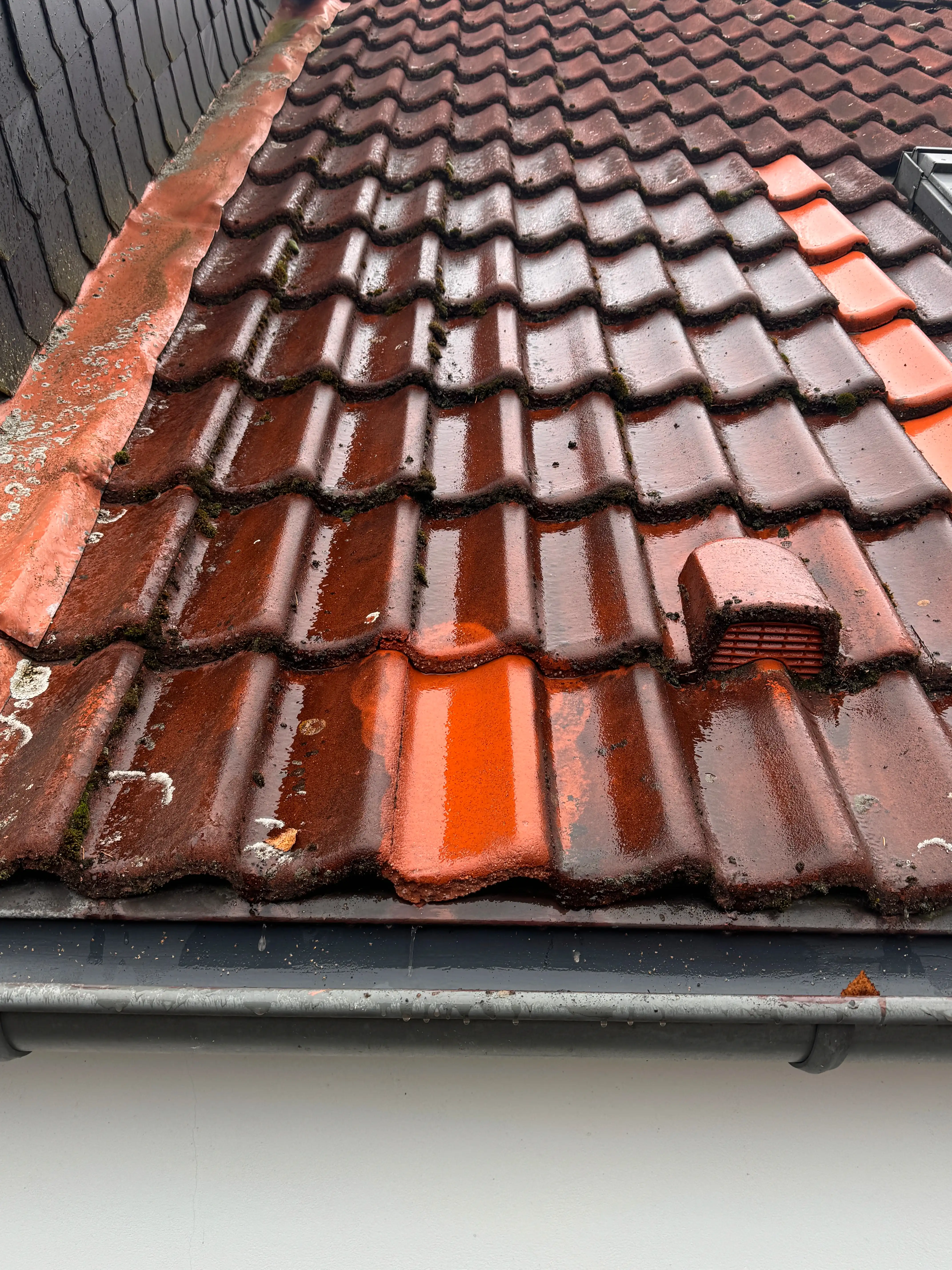 Dachreinigung: Bei der Dachreinigung setzen wir schonende Hochdruckreinigung, um Schmutz und Ablagerungen wie z.B Moos & Pilzflechte zu entfernen, ohne das Material zu beschädigen. Bei Schmutz und Algen nutzen wir ein schonendes Niederdruck-Verfahren mit speziellem Reinigungsmittel, ohne die Dachoberfläche zu beschädigen.